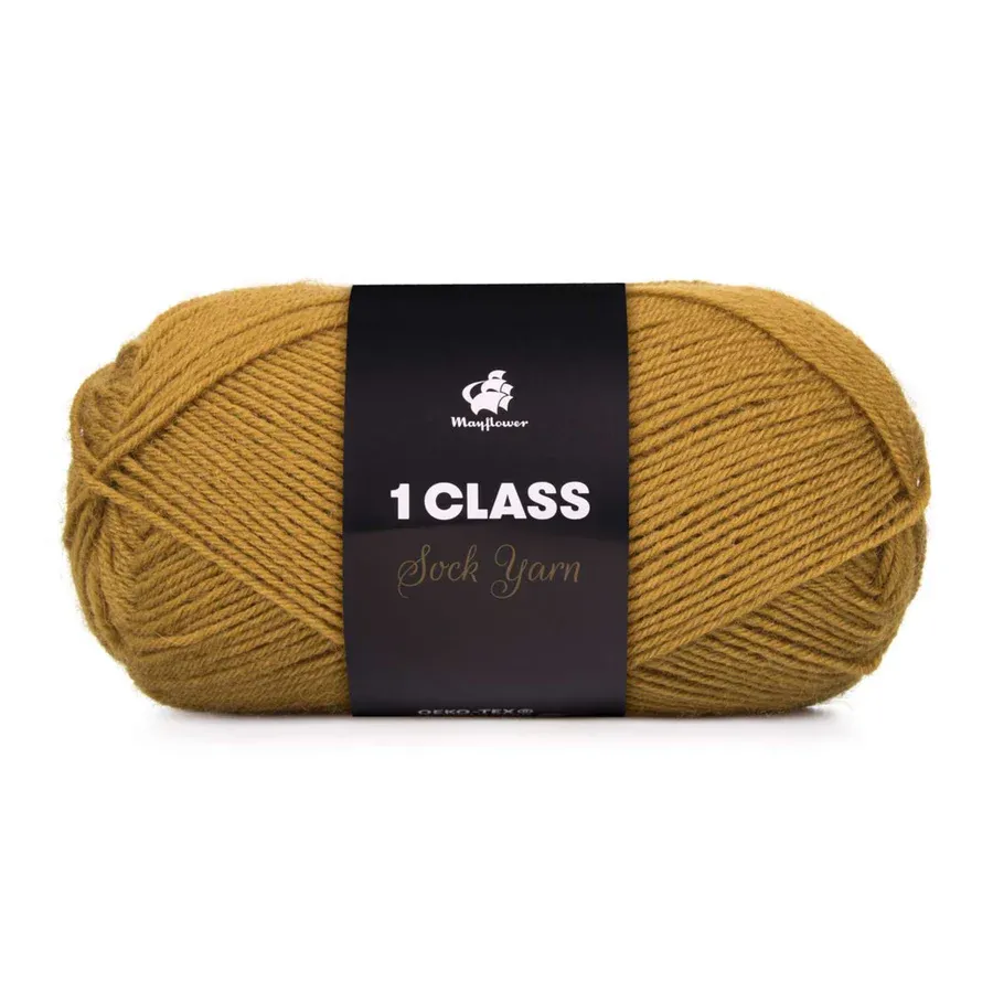 1 Class er et dejligt klassisk strømpegarn fra Mayflower. Garnet produceres i Italien på et spinderi, der er højt specialiseret i strømpegarn. 1 Class har den helt rette balance mellem slidstyrke og varme med sine 75% uld og 25% nylon. Garnet har en strikkefasthed på 28 masker, som gør det til et alsidigt garn til mange projektet.