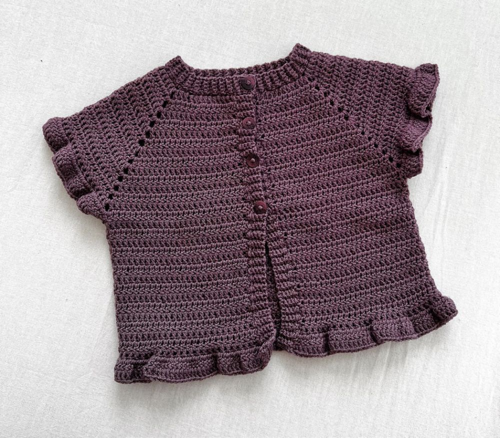 Mon ikke, der er mange der vil blive glad for denne supersøde vest med flæser på ærmer og nederst på kroppen.