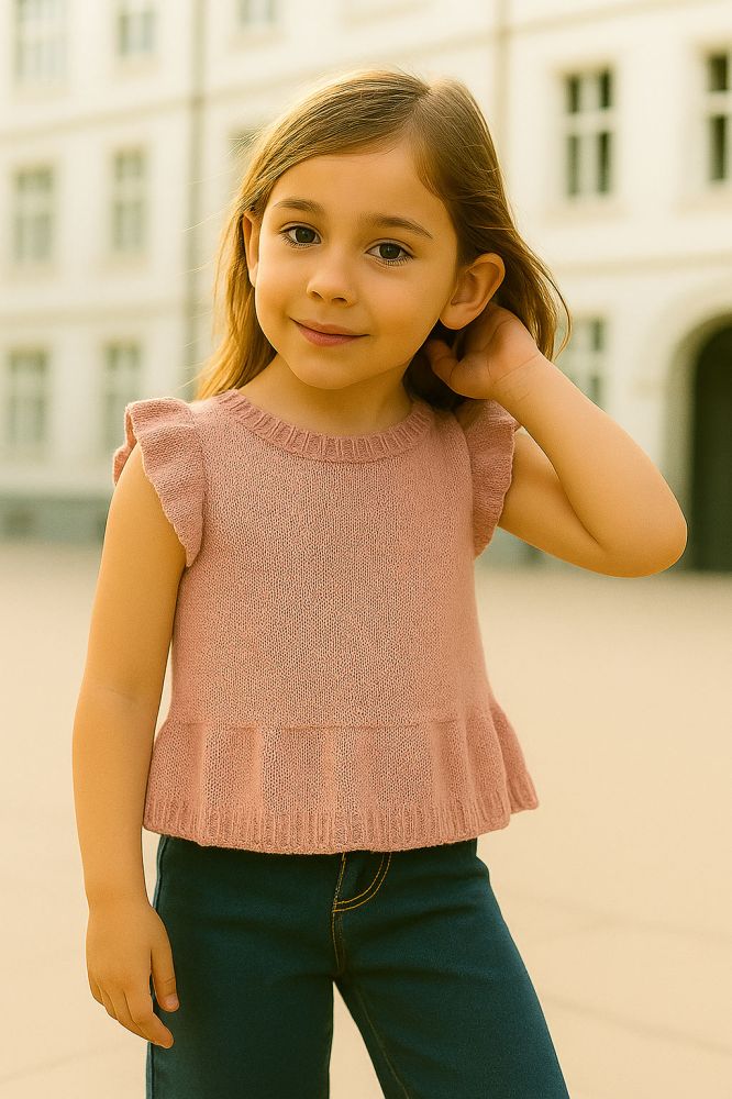 Strikket sommertop eller kjole med flæser