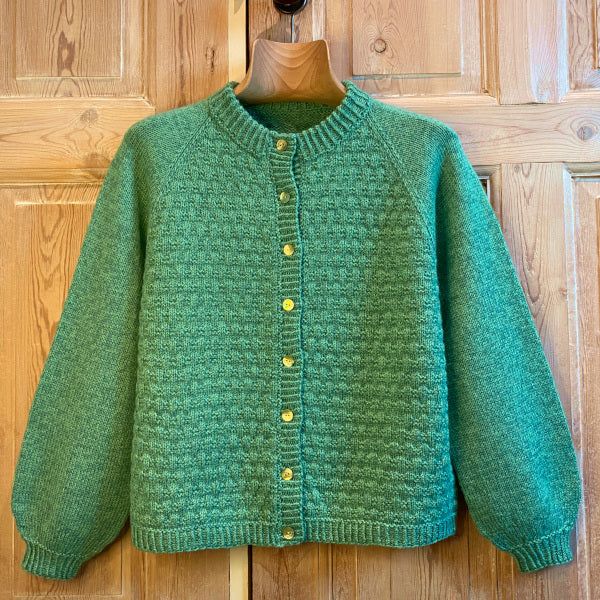 Cardiganen er strikket i to tråde. En tråd Hjerte fine og en tråd Alpaca 400. Begge garner er dejligt bløde og lune.